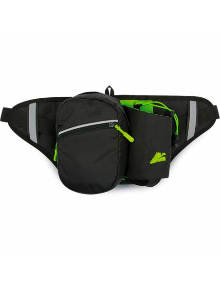 Riñonera Marsupio muy ligera y práctica para los corredores de montaña. Está equipada con un compartimento central, un cinturón ajustable, un reverso de malla, un bolsillo frontal con refuerzo, un bolsillo para botellas de agua y bandas reflectantes.