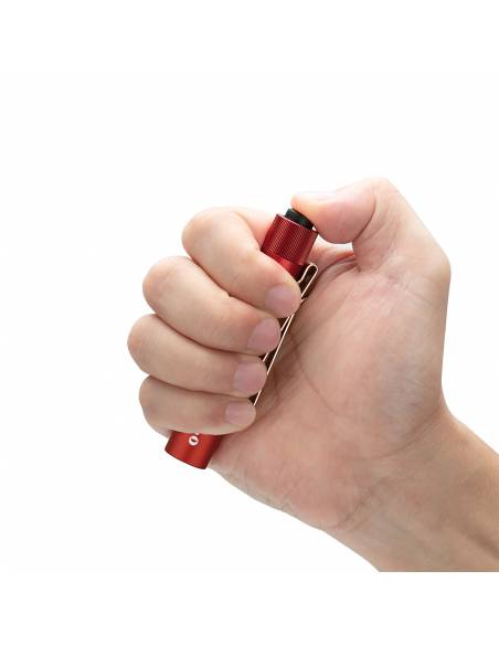 MODELO: I3-T Potencia máxima: 130 lum. Alcance máximo: 54 mt. Alimentación: Batería AAA (incluida) Autonomía: 7 horas. Tipo de LED: Philips LUXEON TX LED. Pulsador trasero. Resistente al agua. Fabricación de aluminio de alta resistencia. Garantía: 5 años.
