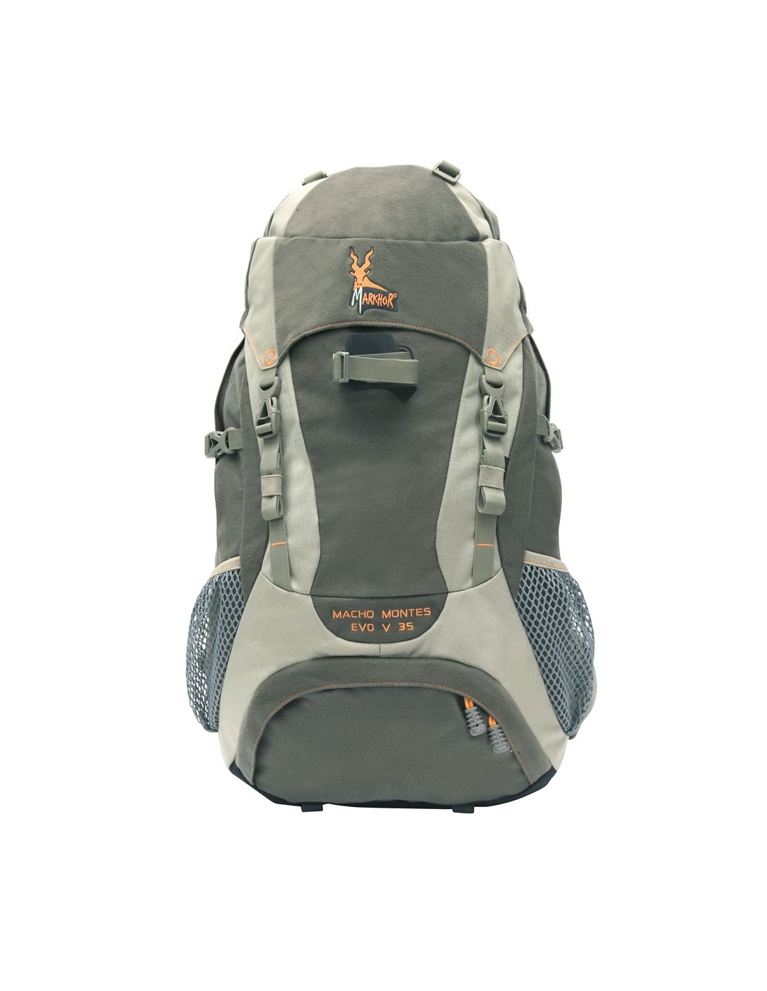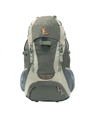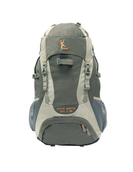 Está equipada con una aza fluorescente de color naranja y dispone de sistema de ventilación para la zona de la espalda para eliminar el sudor. Fabricada con materiales impermeables, resistentes y silenciosos con zonas acolchadas para un mayor confort y estabilidad. El modelo Macho Montes Evo V 35 lt. Es totalmente flexible debido a su diseño ergonómico y dispone de correas ajustables para el pecho aportando una gran comodidad y reparto del peso. Cuenta con cremalleras YKK, 6 bolsillos, un compartimento, una bolsa protectora y un bolsillo opcional para el arma. Además viene equipado con el sistema Hidro Pack para poder hidratarnos en todo momento. Este modelo está disponible en tres tonalidades: Camo Maxi 1, Camo Disolve Veil y Verde. Garantía de 15 años.